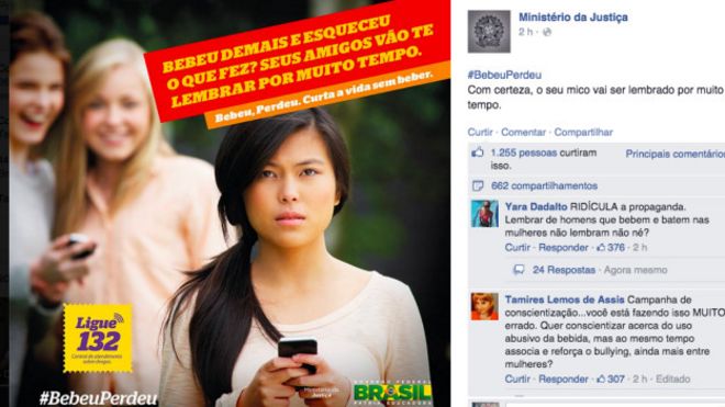 Uma campanha bem intencionada do Ministério da Justiça (MJ) com objetivo de desestimular o consumo de álcool entre os jovens foi criticada por muitos usuários do Facebook, que consideraram as peças publicitárias "machistas", "moralistas" e "hipócritas".